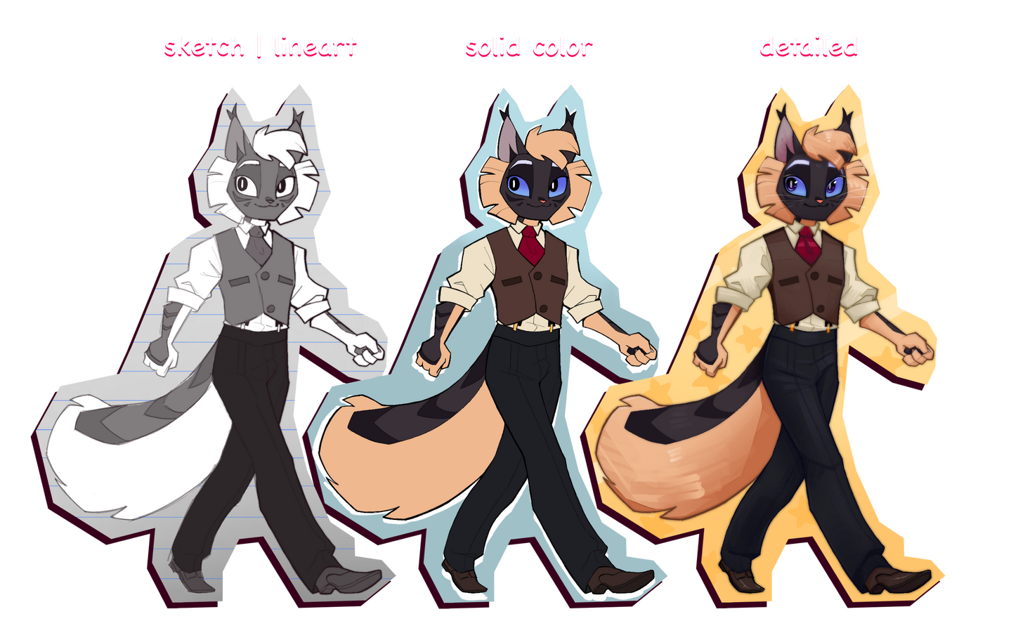 Please be patient with me and do not expect drawings to be done at a designated time. I have a lot of mental hiccups, deal with school, life, and sometimes art block just happens so it's kind of a lot. I will frequently update clients on the status of their piece as soon as updates are made and try to be as transparent as possible :]]]